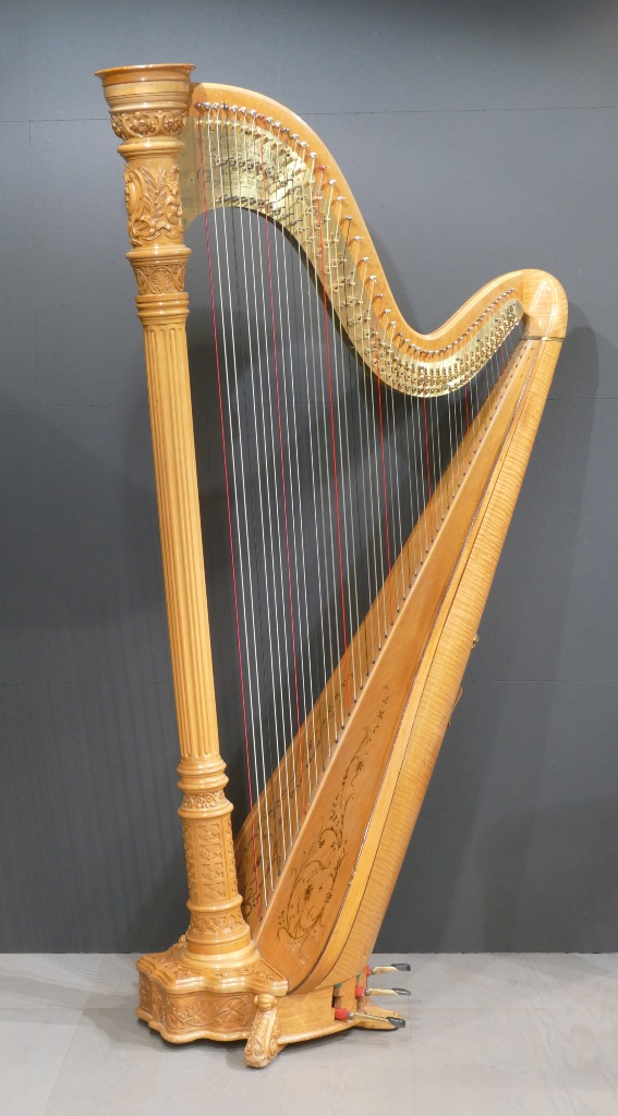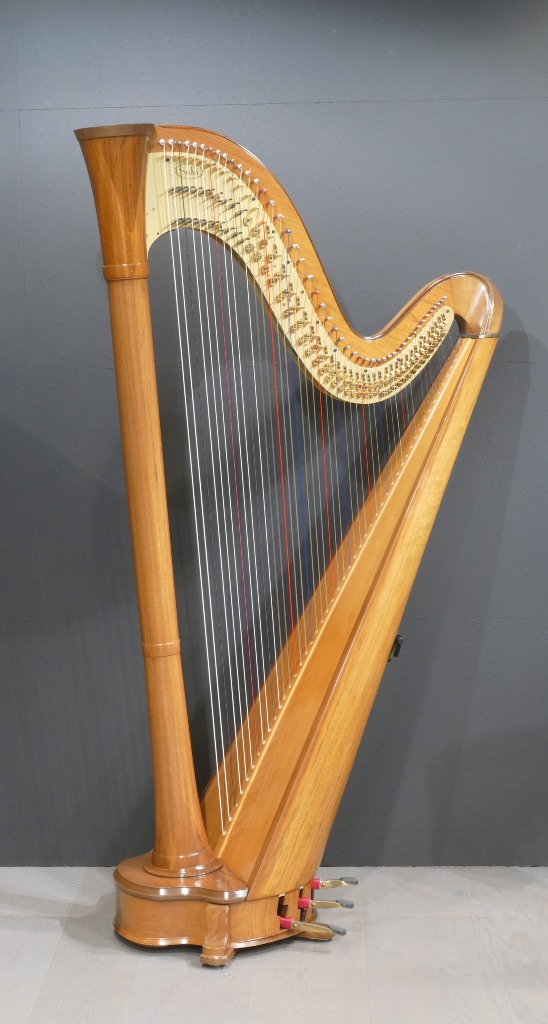 Zubehör:   Transporthülle, Harfenwagen, Stimmschlüssel, Saiten, Hocker